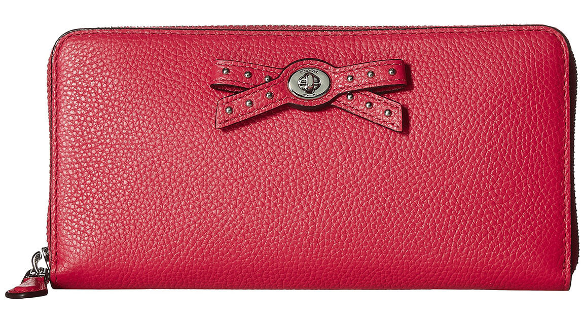 Coach Amaranth Pink Leather Bow Turnlock Tie Zip Around Wallet 53903 NWT