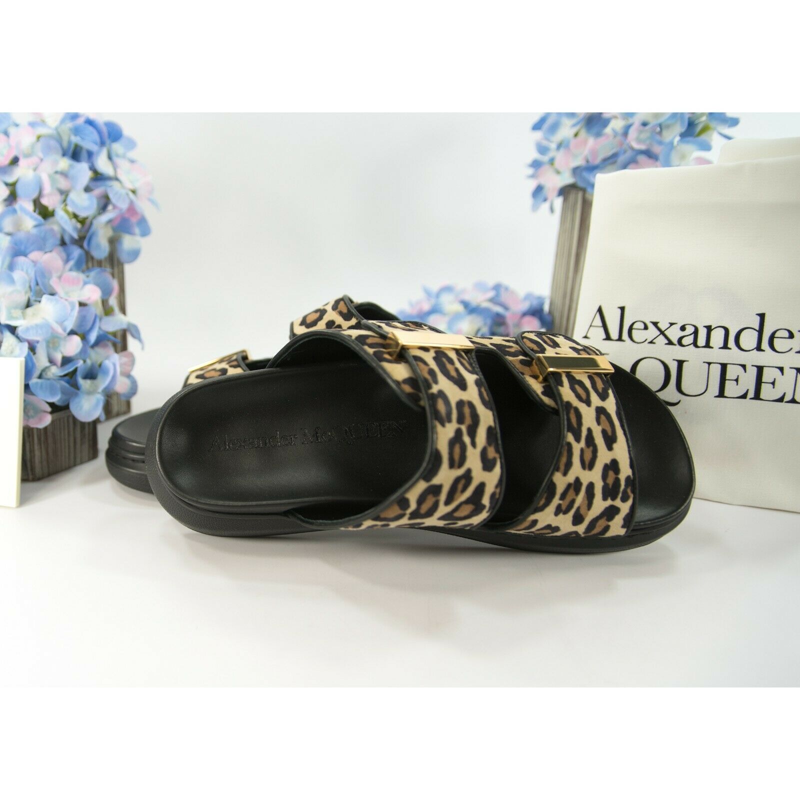 Alexander McQueen Oversized Leopard Suede Hybrid Slide Sandals 38 NIB