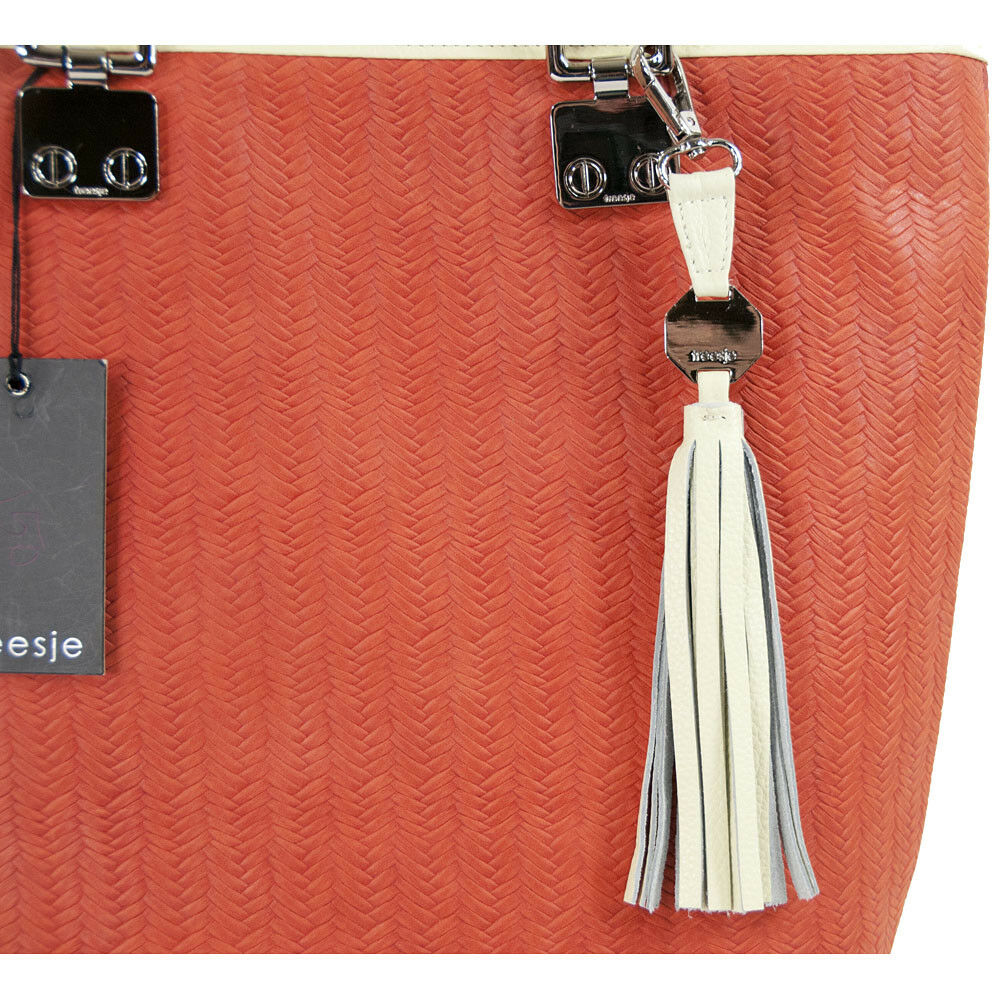 Treesje Orange Woven Leather Cream Tassel Large Organizer AWO-3032 Tote Bag NWT