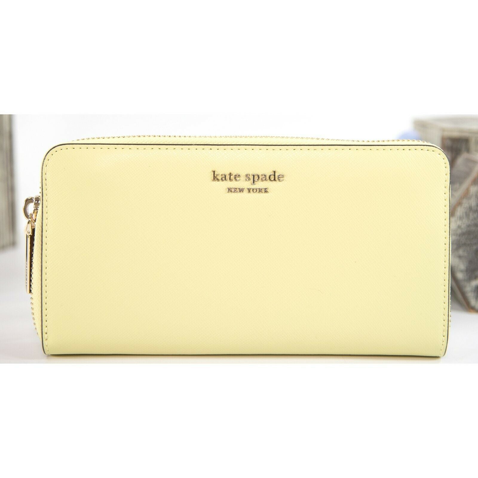 Kate Spade Acid Green Leather Spencer Zip Around Lacey Wallet NWOT