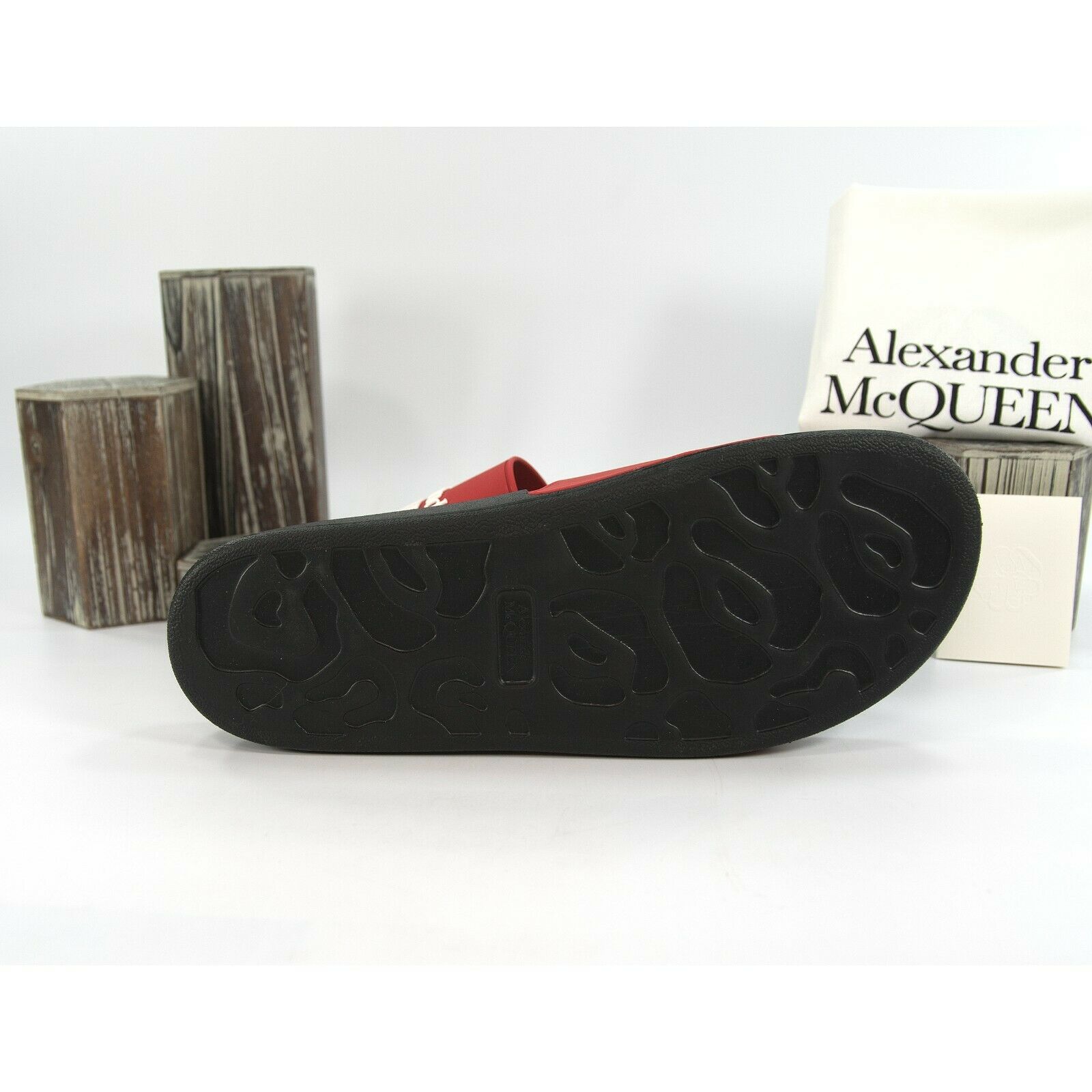 Alexander McQueen Mens Lust Red Black Debossed Logo Rubber Pool Slides 45 12 NIB