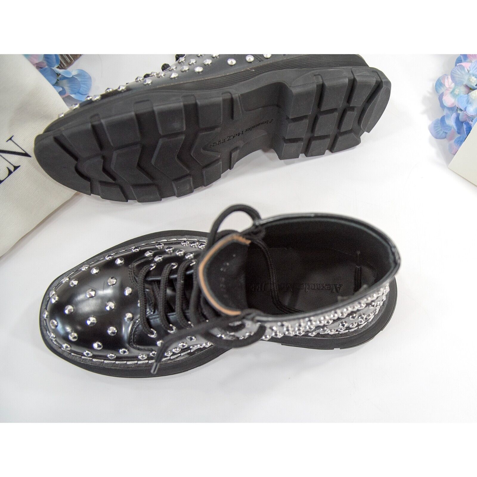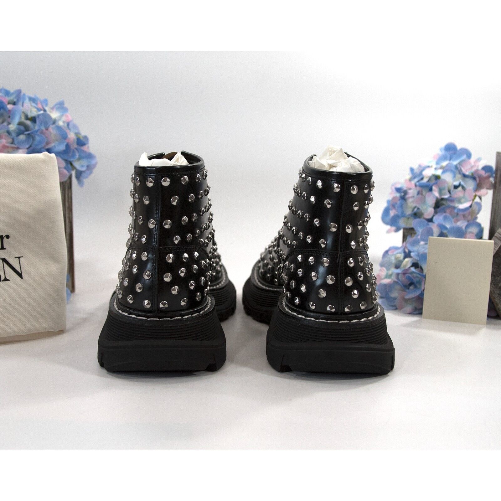 Alexander McQueen Tread Slick Studded Black Leather Lug Sole Boots 37 NIB