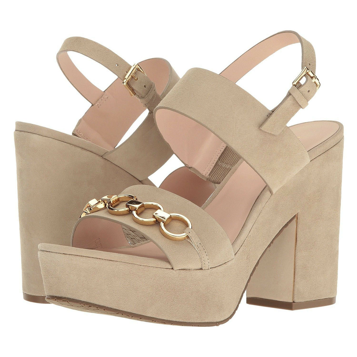 Kate Spade Rashida Beige Sand Kid Suede Chunky Ankle Strap Sandal Heels 9.5 NIB