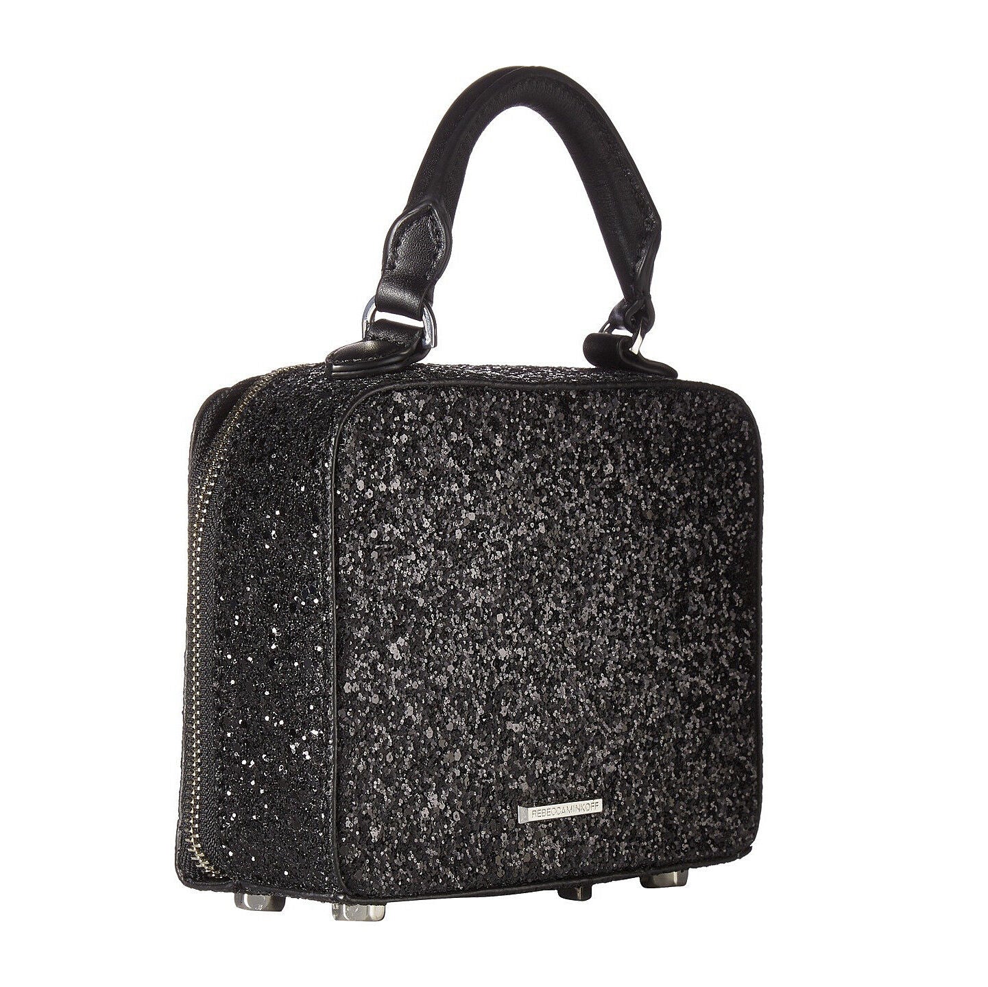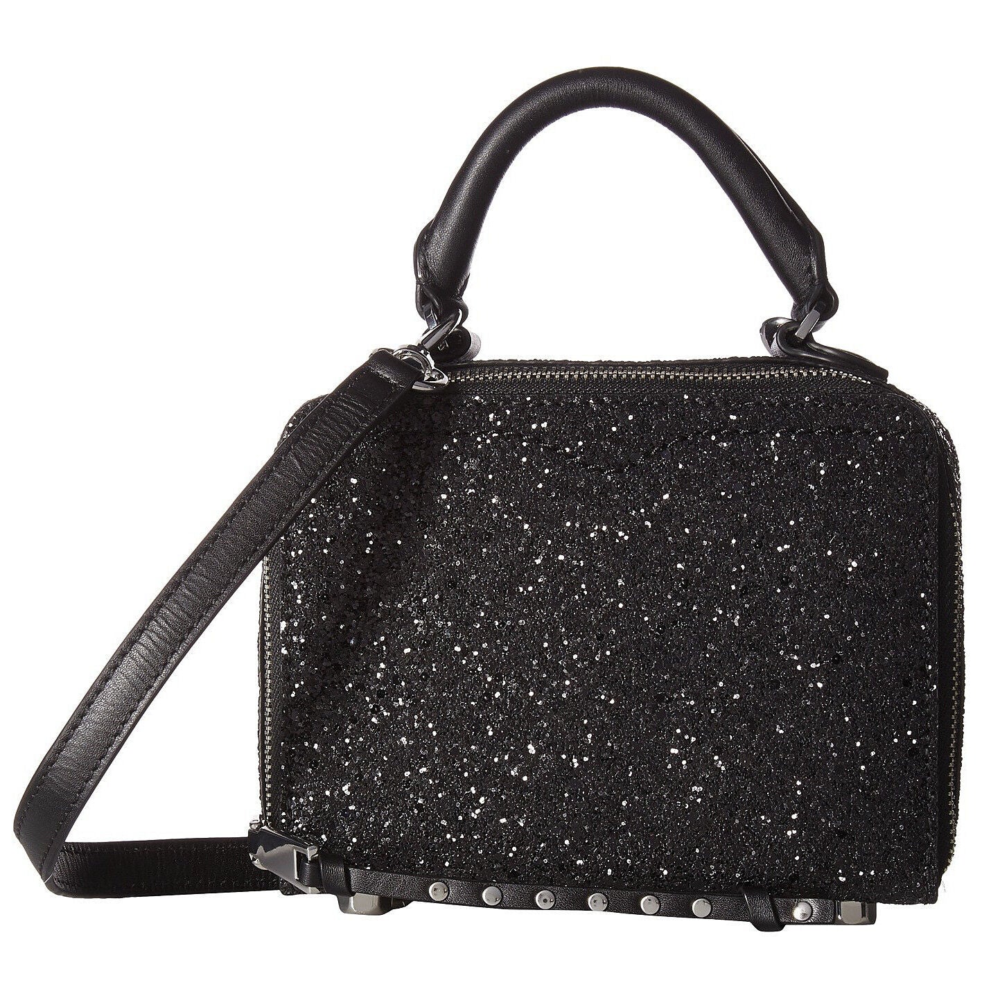 Rebecca Minkoff Black Glitter Studded Leather Box Crossbody Bag NWT
